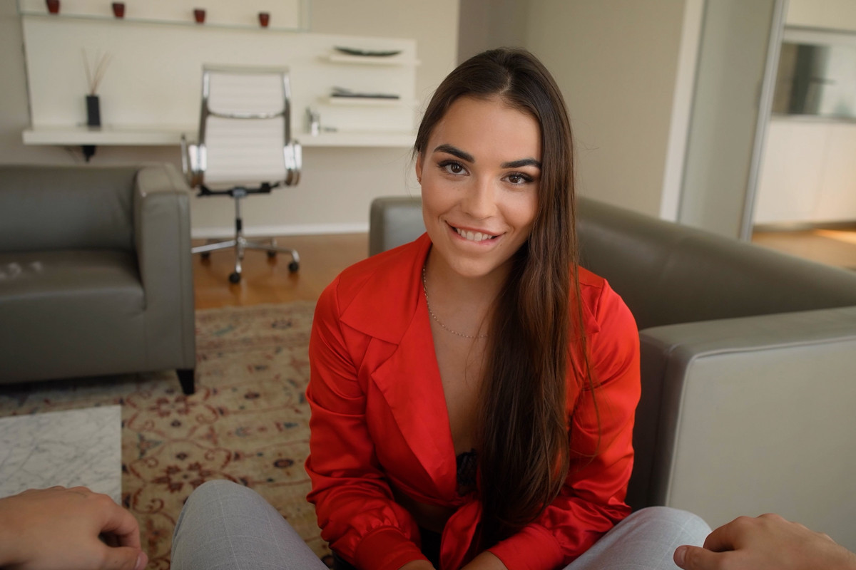 Your sexy boss, Leya Desantis, is counting on you today, big time. She wants you to find a buyer for a luxury penthouse that has been on the market for a while the gorgeous Milan Cheek, will definitely love the place, and evaluate the property of a bankrupt client and find the heiress, the wild blonde, Elena Lux. Your boss and naughty coworkers, Greta and Jasmine, welcome you back in the office after a successful day, and they are not shy to show you how they want to celebrate... all three of them with you.
