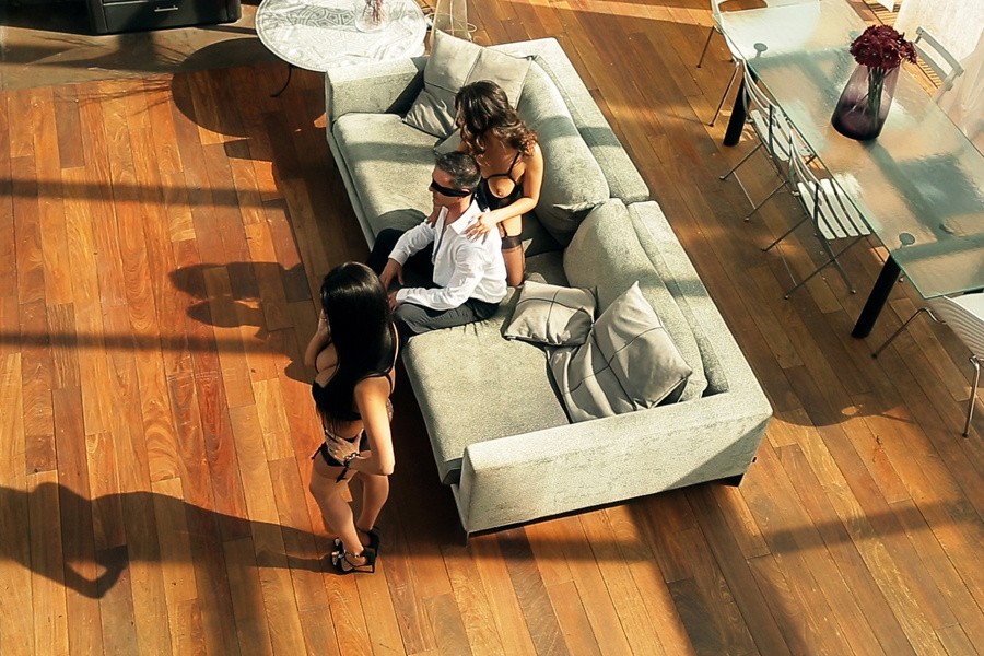 While the strong man is taking and sodomising his four gorgeous partners for the evening, Anna and her American girlfriend come across a man in the hallway. After a quick glance, the two young beauties immediately start sucking the stallion's massive cock. The evening is really starting to get out of hand! Claire is delighted: the party is exactly what she wanted. It remains to be seen what the guests have up their sleeve for her birthday surprise...