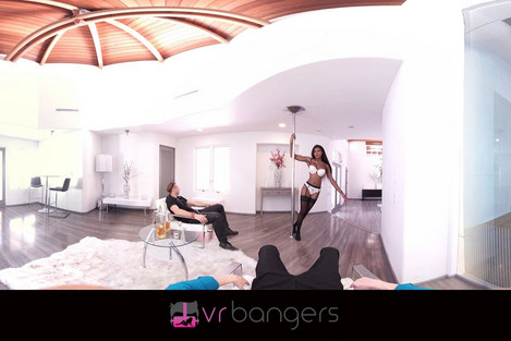 Ready for a private striptease? Nadia dances on a pole for you, twirling in her white lingerie, her long dark hair swinging. She gives each man a lap dance, straddling his waist as she pulls her bra down to expose her pierced nipples. Standing back up, she shakes her ass in his face, and he pushes one finger into her wet pussy, making her moan with pleasure. She grinds against his hand, shivering as arousal races through her, squeezing her pert, round breasts. As Nadia bends over, he spreads her cheeks to expose her wet pussy and plunges two fingers into her until she shakes with orgasm.